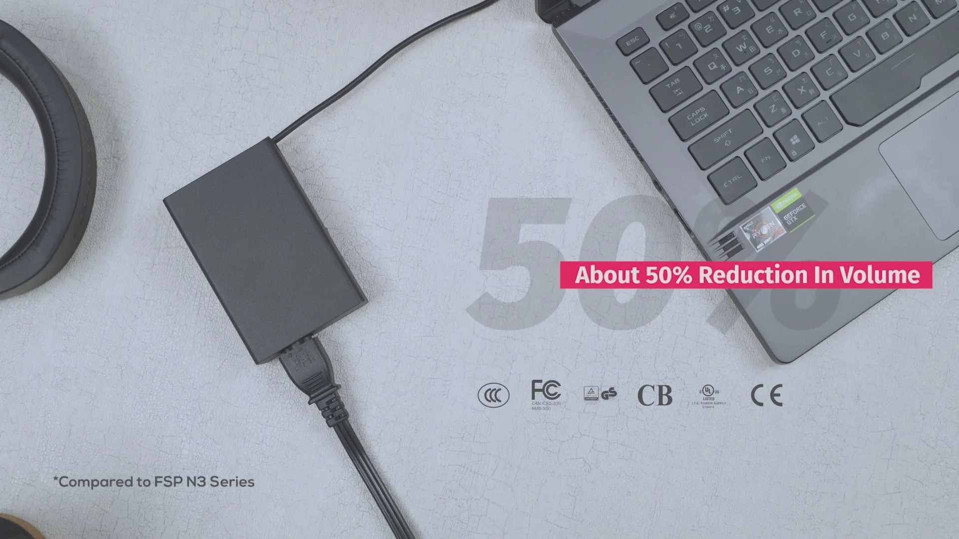 A 90, 120, 135, 150 és 180 W-os változatban elérhető FSP U3 sorozatú adapterek akár 50%-kal kisebbek is lehetnek, mint a hagyományos FSP N3 modellek, anélkül, hogy az negatívan befolyásolná a teljesítményüket. A kisebb és könnyebb súly könnyebb hordozhatóságot tesz lehetővé. Ezenkívül az átgondolt L-irányú kábelkialakítás csökkenti a kábel sérülésének esélyét is.